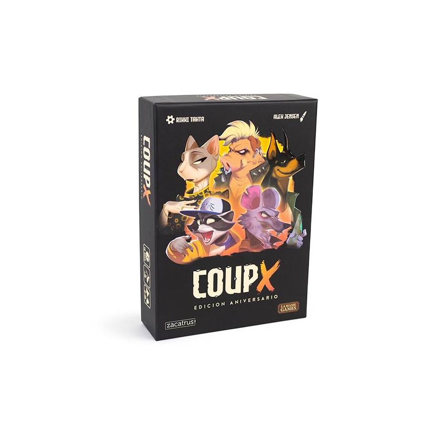 En Coup debes eliminar a los demás usando sabiamente las habilidades de tus cartas (o mentir usando habilidades de personajes que no tienes). Parece fácil pero… ¡cuidado! Si te cuestionan y has mentido, perderás tu tarjeta. Gana la última persona que sobreviva con al menos una de sus cartas.