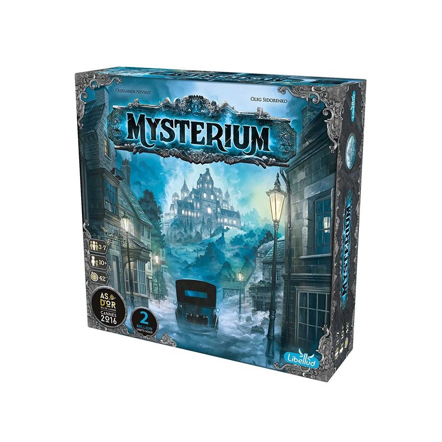 Mysterium es un juego cooperativo que se enfoca en la interpretación de imágenes, comunicación y deducción. Un jugador toma el lugar del fantasma que enviará cartas de visión como pistas, mientras que los médiums trabajarán en conjunto para interpretarlas y resolver el misterio.