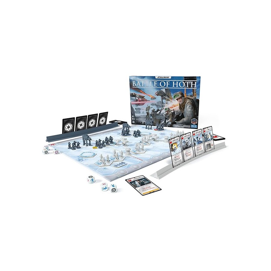 En el inhóspito planeta helado de Hoth, el silencio habitual se ve súbitamente roto por el estruendo mecánico de los gigantescos andadores. Desde sus trincheras, los valientes soldados rebeldes divisan por fin a las fuerzas imperiales que avanzan implacablemente hacia ellos. La Alianza rebelde prepara sus valiosos escuadrones de deslizadores de nieve en un intento desesperado por frenar el asalto terrestre y completar la evacuación de la Base Eco.