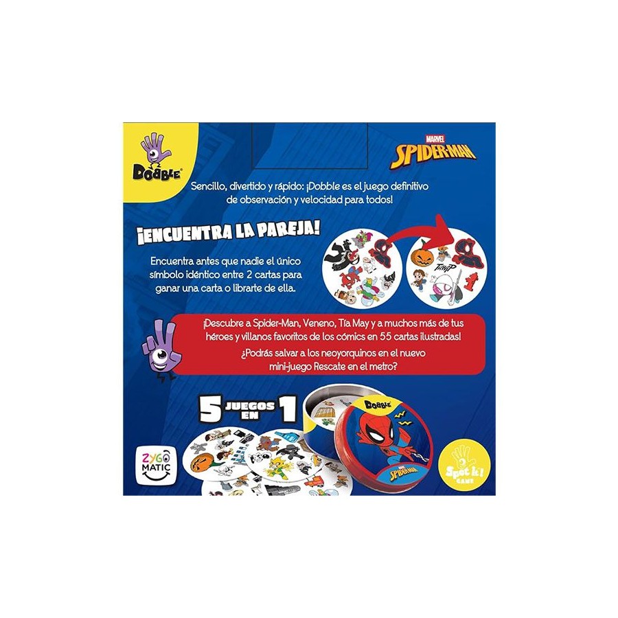 Dobble Spider-Man trae toda la velocidad y diversión del clásico Dobble al universo del superhéroe arácnido más famoso de Marvel. Un juego de observación y reflejos donde los jugadores deben encontrar lo más rápido posible el único símbolo en común entre dos cartas… ¡antes que los demás!