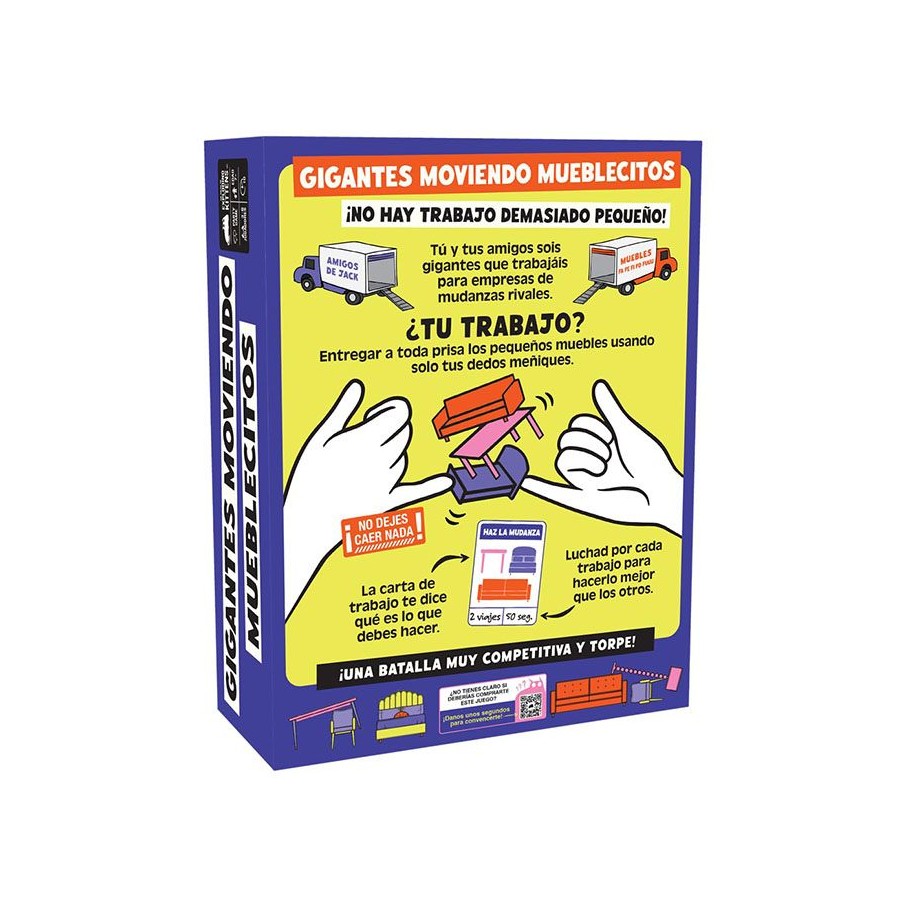 Conoce Gigantes Moviendo Muebles Pequeñitos, el juego de fiesta altamente competitivo… y altamente torpe. El objetivo de tu equipo es mover los muebles en miniatura a su nuevo hogar en la menor cantidad de viajes posible y lo más rápido que puedan.