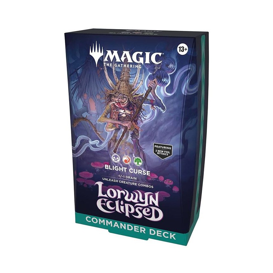 En los rincones más oscuros de Shadowmoor, Auntie Ool lidera a los boggarts mediante maldiciones devastadoras y magia corrupta. Este mazo se centra en el control, la disrupción y el castigo constante a tus oponentes, convirtiendo la corrupción y las plagas en herramientas de victoria.