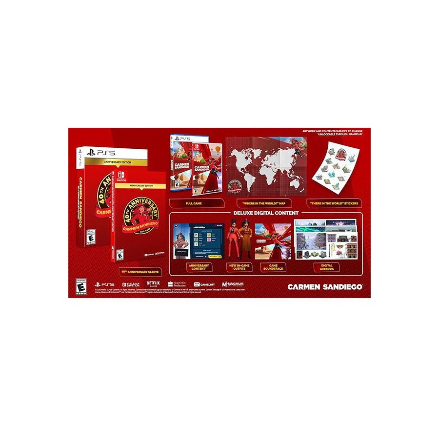 ¡La súper ladrón escarlata Carmen Sandiego está de vuelta! Adorna el sombrero rojo característico de Carmen y juega como la vigilante para navegar por un mundo de espionaje, utilizando dispositivos de alta tecnología y, en última instancia, capturando VILE. Los gumshoes novatos y los detectives experimentados están invitados a poner a prueba sus habilidades de detective, ya sea en la campaña principal impulsada por la narrativa o en el modo clásico "Los archivos Acme". Aprenda sobre los destinos del mundo real y su historia. Almacena pistas y hechos de la ciudad en tu almanaque de confianza. Carmen Sandiego Edición 40 Aniversario incluye: 40 aniversario Caper "¿Dónde en el mundo? "; Cosméticos Skins - Traje clásico de Carmen y traje de motocicleta Carment; Libro de arte oficial digital y banda sonora; "¿Dónde en el mundo?" Mapa; & Pegatinas "There in the World"! ¡Los extras de la edición del 40 aniversario se desbloquean durante el juego!