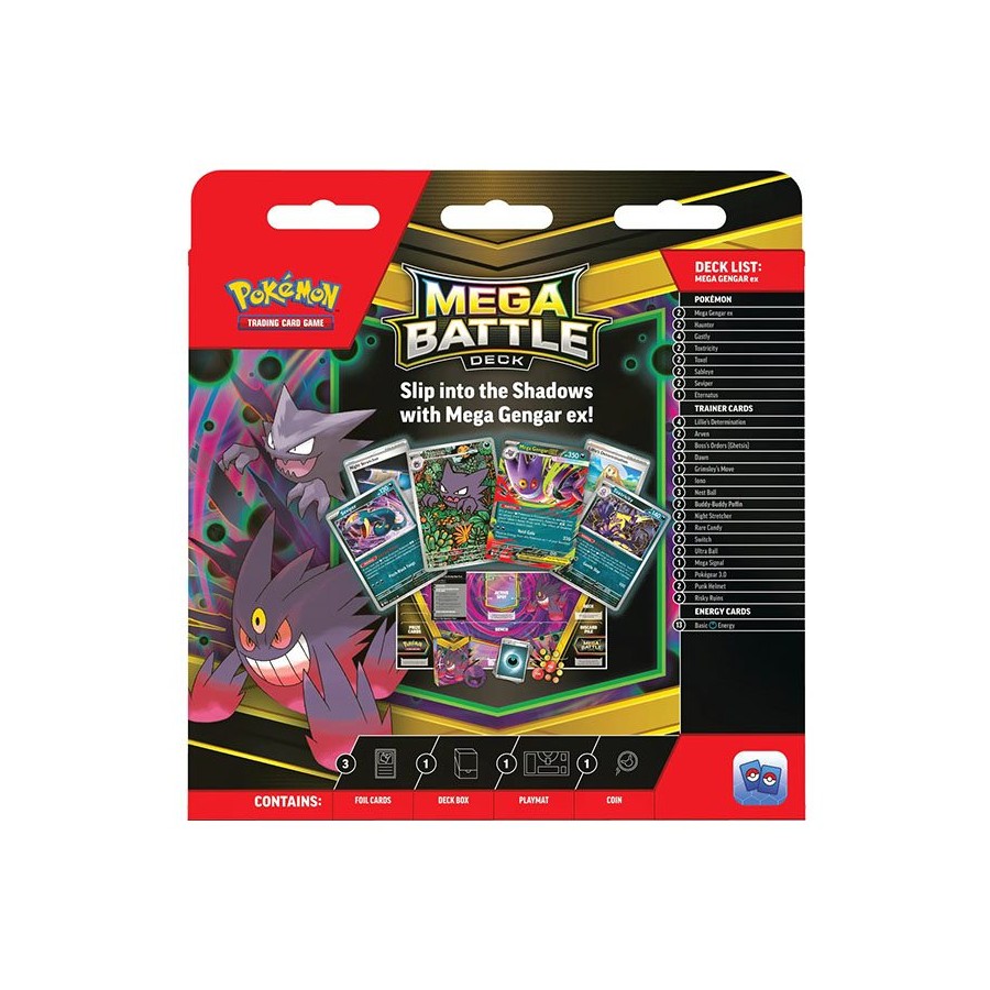 ¡Dos nuevos Mega Battle Decks están listos para el combate! Únete a Mega Gengar ex y ataca desde las sombras, o llama a Mega Diancie ex y deslumbra a tus oponentes con tu habilidad. Cada mazo incluye un poderoso Pokemon ex y todo lo que necesitas para jugar de inmediato
